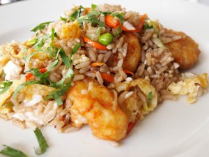 The last time I visited my brother in San Salvador we shared a delicious stir-fried rice made with fish, that