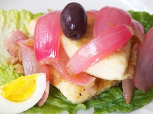 Originally made with a humble fish called bonito, escabeche is a classic appetizer served cold. A fried fish fillet is