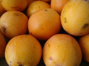 Granadillas belong to the passion fruit and tumbos family, but has a very sweet and delicate flavor instead. The color of