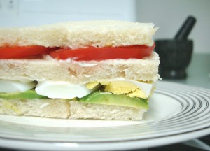 TASTY TOMATO, EGG AND AVOCADO ALL-TERRAIN SANDWICH Triple in Spanish means the same as it does in English. Same word,